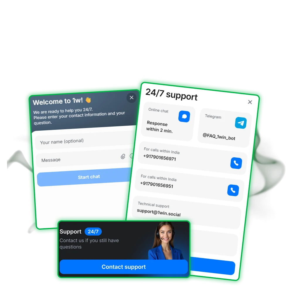 This page lists all ways to contact 1win casino in India. You can reach our team through email, live chat, phone, messengers, and social networks. We support English and Hindi. Average response time is under 2 hours for most channels.